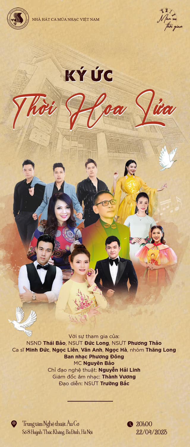 CHƯƠNG TRÌNH NGHỆ THUẬT " KÝ ỨC THỜI HOA LỬA" - 20h,ngày 22/04/2023 - tại TT Nghệ thuật Âu Cơ, số 8 Huỳnh Thúc Kháng. Những cung bậc cảm xúc mang màu của thời gian,…